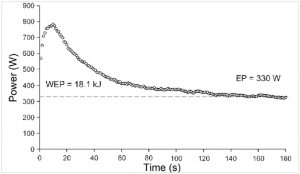 The mean power from the last 30 sec of the test is the critical power. All the work measured above this value, throughout the 3min test, is the W’ (Figure 2)
