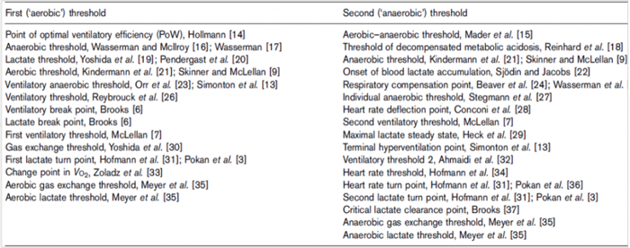 Table 1: The different names used to describe the first and second thresholds. Adopted from Binder et al. (2008)